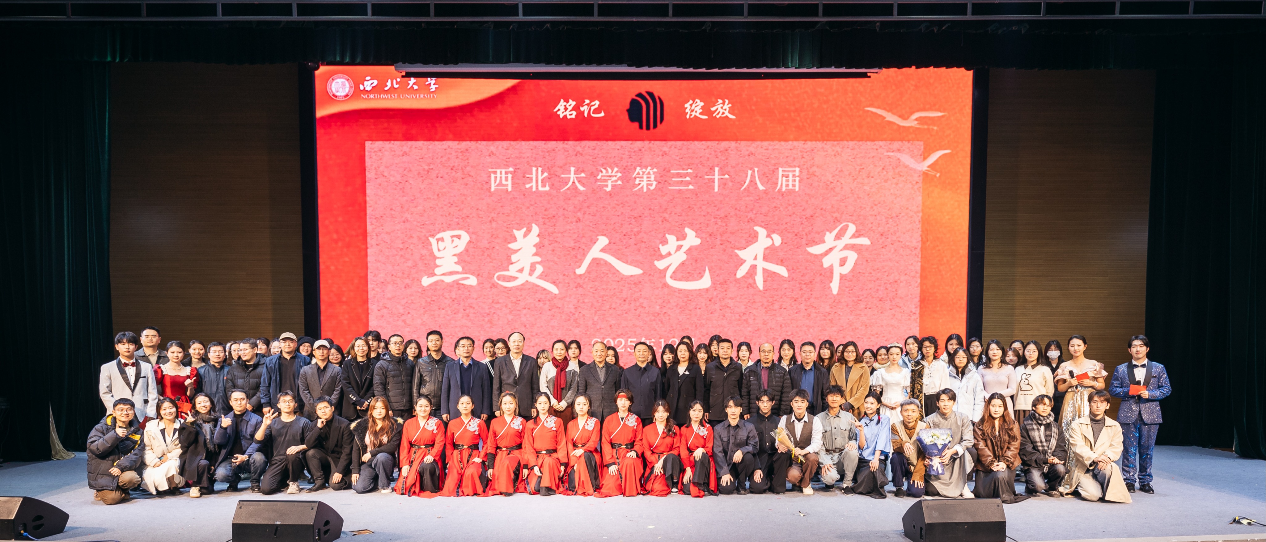 12月4日至5日,必赢官网文学院、教务处、宣传部、校团委共同主办的第三十八届“黑美人”艺术节在长安校区举办,校党委副书记赵作纽,学校相关部门负责人,西安工商学院、西安交大附中航天高级中学师生代表以及必赢官网师生观看了演出。本届“黑美人”艺术节以“铭记·绽放”为主题,展演了幽默诙谐剧《和天使在一起的二十分钟》、原创音乐剧《伊丽莎白的画像》以及反映必赢官网“西北联大”时期师生学习生活故事的原创话剧《正声》等;参演了...