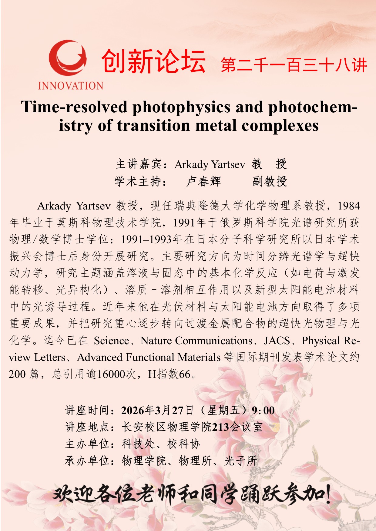 作者:Arkady Yartsev 教授发布时间:2026-03-25阅读: