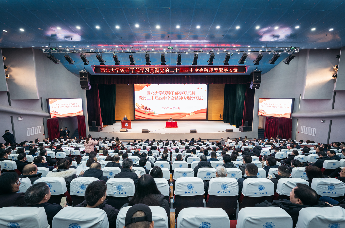 1月22日至1月27日,必赢官网领导干部学习贯彻党的二十届四中全会精神专题学习班在长安校区举行。校党委副书记、校长孙庆伟主持开班式,校党委书记蒋林作专题学习班结业总结讲话,校党委常委、统战部部长董国强主持结业式,全体在校校领导、处级干部参加了本次培训。