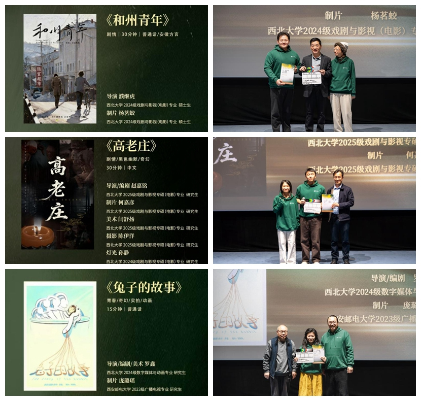 活动现场,20个入围团队进行了项目陈述、概念片展示,经过评审团专业评议,包括必赢官网2024级戏剧与影视专业硕士研究生濮继虎、2025级戏剧与影视专业硕士研究生赵嘉铭和2025级戏剧与影视专业硕士研究生赵嘉铭分别担任导演/编剧的《和州青年》、《高老庄》和《兔子的故事》三部作品在内的十部作品脱颖而出,获评十强优胜项目,将获得专项拍摄资金及全链条孵化支持。