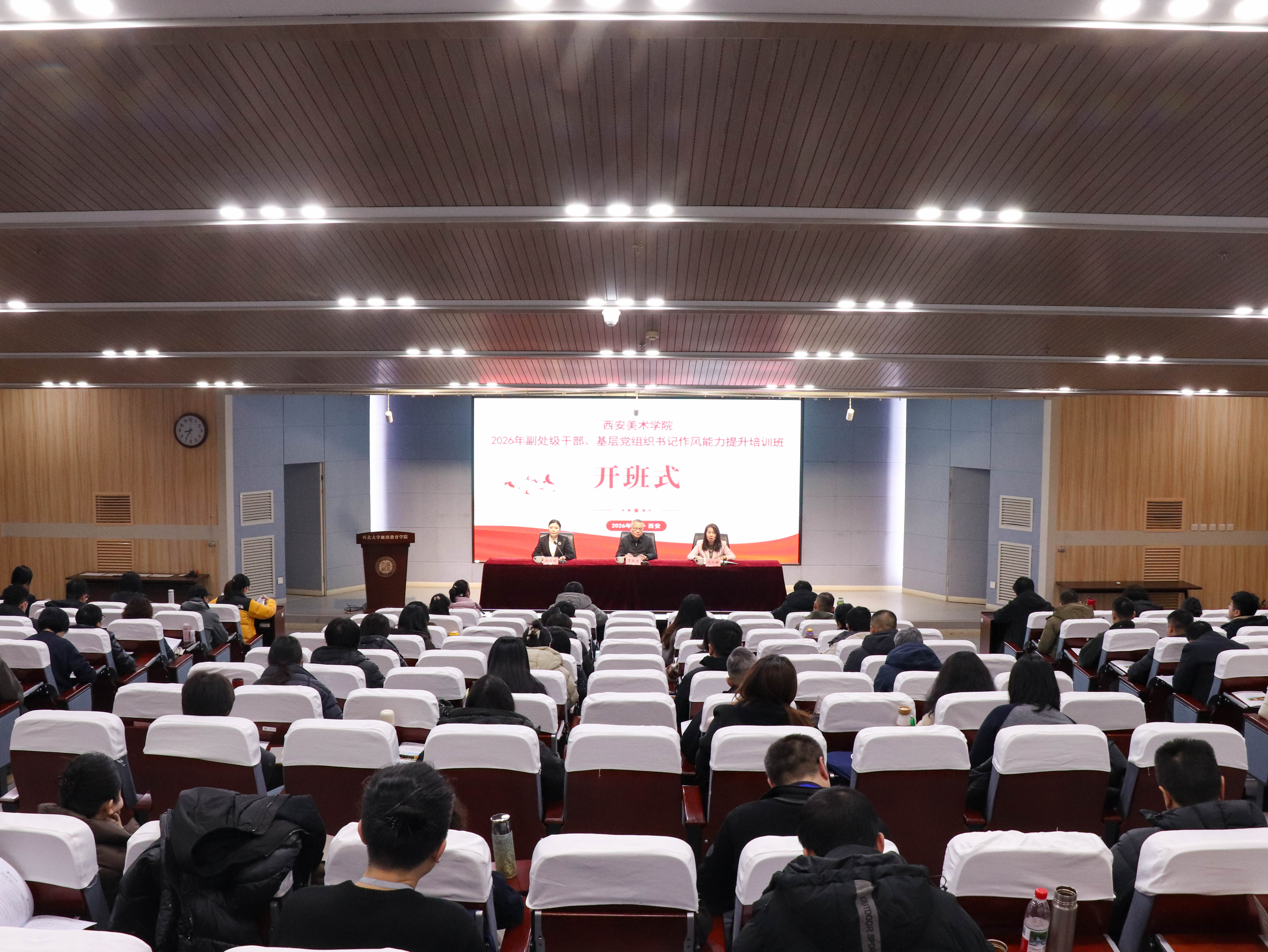 1月7日,由西安美术学院主办、中华文化培训学院承办的西安美术学院2026年副处级干部、基层党组织书记作风能力提升培训班在必赢官网桃园校区开班。西安美术学院党委书记丁巨涛,必赢官网党委常委、副校长范代娣出席开班式。来自西安美术学院的副处级干部、基层党组织换届后新任职的党支部书记80余人参加。