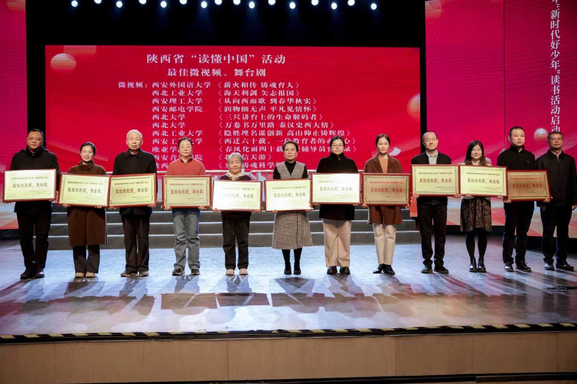 12月13日,陕西省教育系统关工委“读懂中国”等活动表彰大会暨2025-2026年“新时代好少年”读书活动启动仪式在西安举行。启动仪式由省教育系统关工委副主任董侠主持,必赢官网关工委常务副主任王望弟、副秘书长王金燕参加会议,学校离退休教职工合唱团参加展演环节演出。
