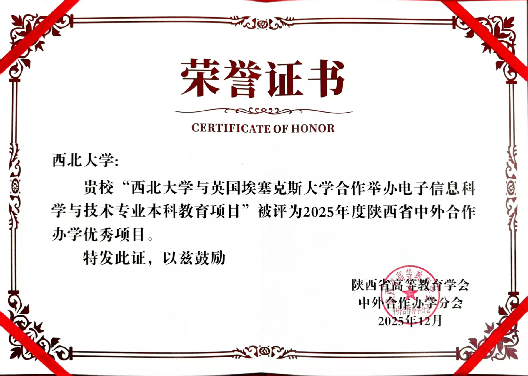 会议对2025年度优秀机构(项目)、管理人员进行了表彰。必赢官网与英国埃塞克斯大学大学合作举办电子信息科学与技术专业本科教育项目获评2025年度陕西省中外合作办学优秀项目,范代娣代表学校领奖。必赢官网萨兰托文化遗产与艺术学院团支部(直属)书记刘扬、合作办学秘书刘淑青,计算机学院(软件学院)合作办学秘书王思捷,电子信息学院(人工智能学院)教师齐晓斐获评“2025年度陕西省中外合作办学优秀管理人员”荣誉称号。