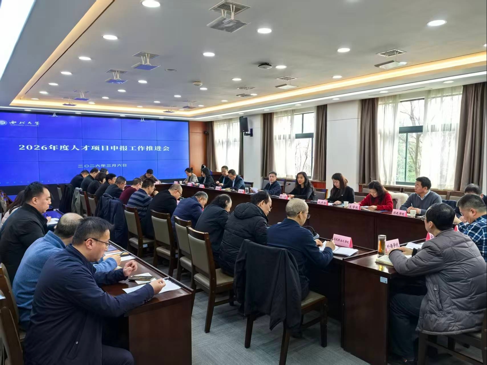 会议听取了人才办、科技处关于国家级人才项目申报进展情况汇报及下一步工作安排。各教学科研单位依次汇报了本单位2026年国家级人才项目组织动员、申报工作进展,并就“十五五”人才队伍建设规划进行了交流。