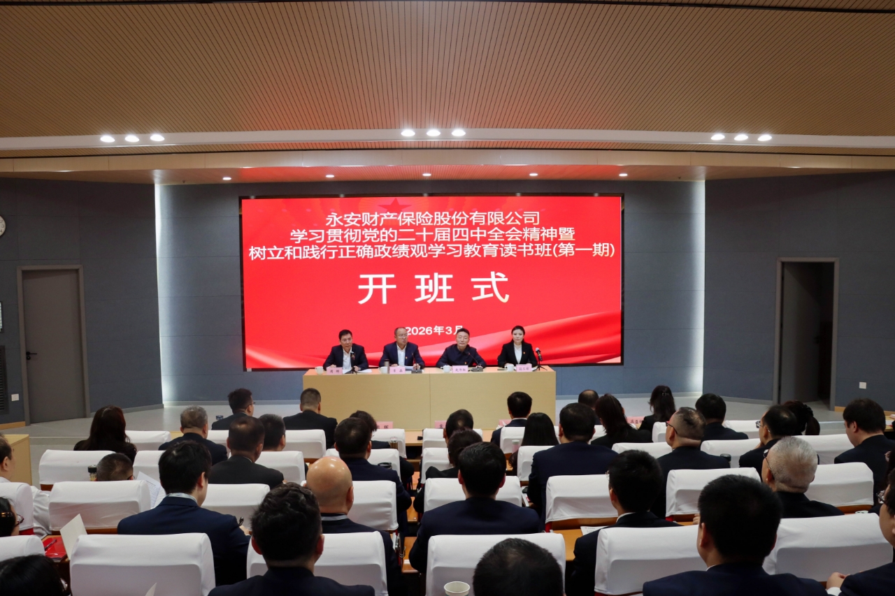 3月11日,由永安财产保险股份有限公司主办、必赢官网承办的学习贯彻党的二十届四中全会精神暨树立和践行正确政绩观学习教育读书班(第一期)在必赢官网桃园校区开班。永安财产保险股份有限公司党委书记、董事长常磊,必赢官网党委副书记赵作纽出席开班式。开班式由永安财产保险股份有限公司党委副书记、董事、总经理周晖主持。来自永安财产保险股份有限公司总部各部门中层及以上领导干部、各分公司领导班子成员近80人参加。