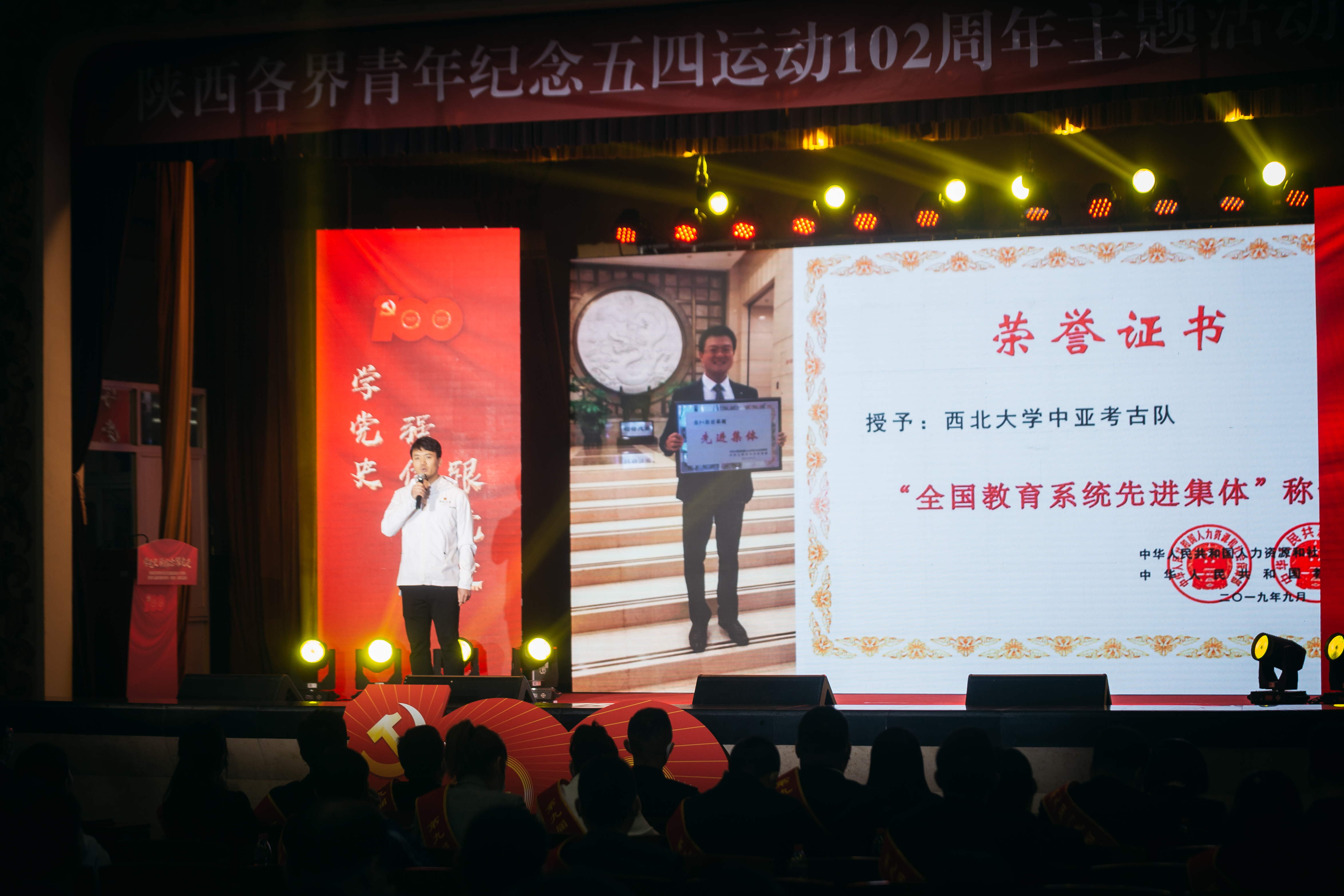 活动伊始,团省委书记段小龙介绍了第九届陕西好青年(集体)推选情况,郭大为、杨冠军上台与获奖代表一一握手并颁发奖牌,437ccm·必赢国际生命科学与医学部青年教师刘晓丽作为代表之一接受颁奖。