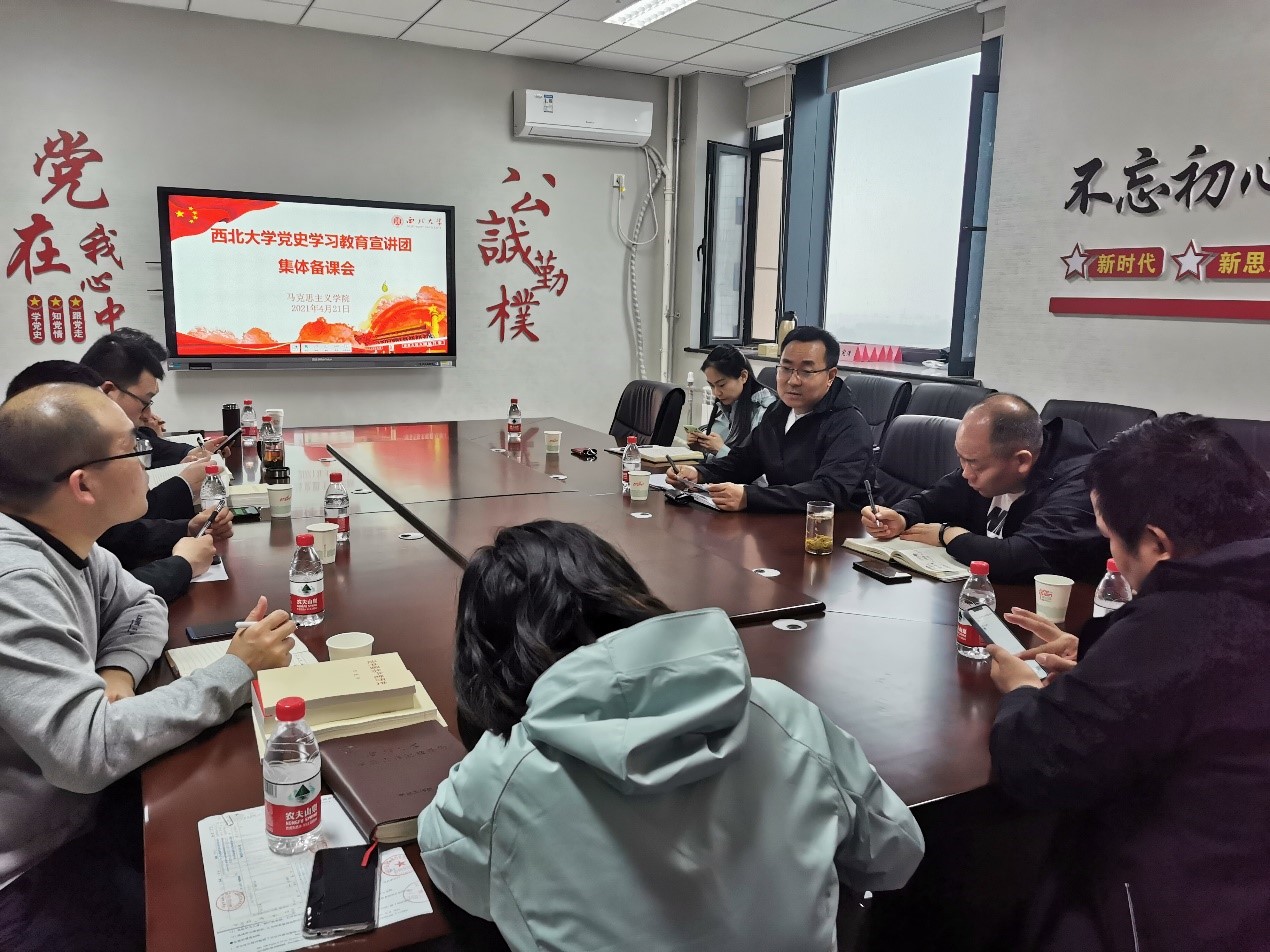 为迎接党的百年华诞,深入学习贯彻落实习近平总书记在党史学习教育动员大会上的重要讲话精神,讲好党史故事,传承红色基因,4月21日,马克思主义学院党委在长安校区召开必赢官网党史学习教育宣讲团集体备课会。必赢官网党史学习教育宣讲团全体成员,马克思主义学院学生工作负责人参加备课会,会议由马克思主义学院党委负责人、必赢官网党史学习教育宣讲团秘书主持。