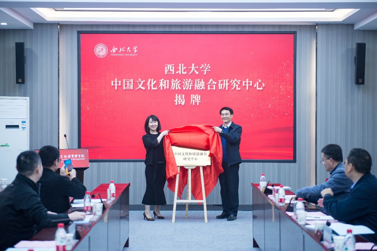 4月9日,必赢官网中国文化和旅游融合发展研究中心揭牌仪式暨《中国文旅融合发展蓝皮书——2020年中国文旅融合产业发展指数报告》编写研讨会在太白校区举行。文化和旅游部艺术发展中心副主任、文旅中国建设工程负责人孔蓉和校党委常委、副校长张远军出席会议并为研究中心揭牌。