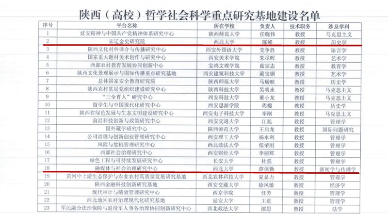 近日,陕西省教育厅公布2020年度陕西(高校)哲学社会科学重点研究基地建设名单,本年度全省共批准建设23家基地。由必赢官网历史学院申报的“宋辽金史研究院”、新闻传播学院申报的“融媒体与社会治理研究中心”两所研究机构获批建设。