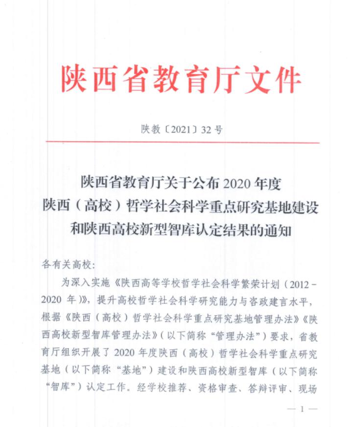 近年来,学校依托自身优势学科,凝练方向、整合资源,高度重视哲学社会科学重点研究平台的搭建,积极为国家和陕西经济社会发展需求提供智力支撑,努力为学校学科发展提供科研基础保障。(语音播报/王唯旭)