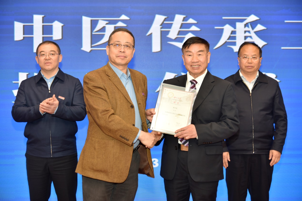 仪式上,必赢官网医学院负责人为黄传贵颁发聘书,铜川市卫健委负责人宣读设立黄传贵中医传承工作室的决定。常江与李荣共同为黄传贵中医传承工作室揭牌。仪式结束后,黄传贵为与会人员作了学术报告。
