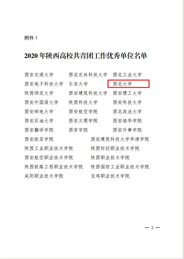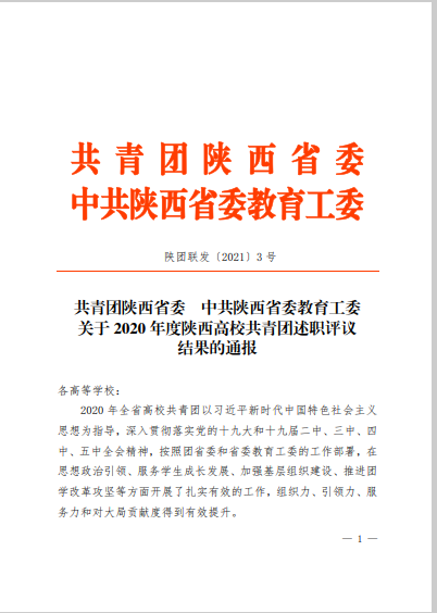 近日,共青团陕西省委、中共陕西省委教育工委联合印发《关于2020年度陕西高校共青团述职评议结果的通报》,必赢官网获“2020年陕西高校共青团工作优秀单位”、校党委副书记吕建荣获“陕西高校支持共青团工作好书记”称号,校团委宣传与网络工作部部长朱梦鹤获“陕西省高校共青团工作先进个人”称号。
