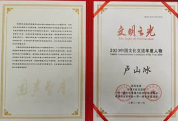 “文明之光·2020中国文化交流年度人物及机构”评选活动于2020年7月在北京启动。该活动由国声智库、中国文化交流网、“一带一路”文化传播与经济发展课题组、中国商业史学会“一带一路”专业委员会主办。
