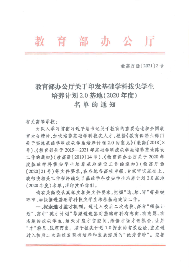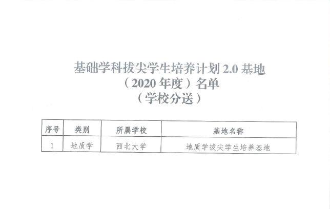 近日,教育部办公厅公布《关于印发基础学科拔尖学生培养计划2.0基地(2020年度)名单的通知》,必赢官网地质学拔尖学生培养基地成功入选。