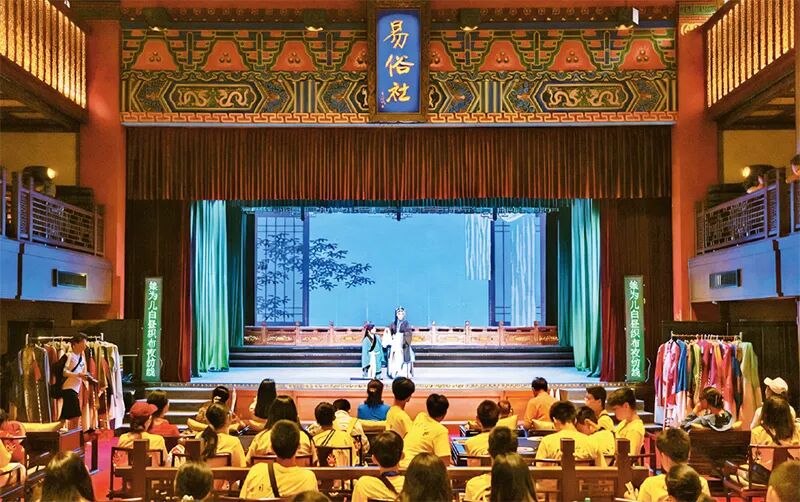 改革开放以来,易俗社在市场经济激荡、多元文化碰撞中寻求发展,通过复排经典剧目,传承表演绝活,推动古老秦腔技艺薪火相传。步入新时代,易俗社持续开展“送戏下乡”,走进田间地头、社区校园,悠扬的秦腔回荡在新时代热土上。除了复排经典剧目,剧社还推出《党的女儿》、《昭君行》等新编秦腔剧作,触动了不少青年观众的心灵。同时,将经典剧目、名家唱段进行数字化采集与网络投放,尝试线上直播,使百年剧社在数字时代焕发新的魅力。这份坚守与创新,不仅滋养着本土的文化土壤,更吸引了世界的目光。2023年5月,首届中国—中亚峰会在西安举办。国家主席习近平夫人彭丽媛邀请出席峰会的吉尔吉斯斯坦总统夫人扎帕罗娃、乌兹别克斯坦总统夫人米尔济约耶娃共同参观易俗社,在百年剧场欣赏秦腔经典折子戏选段。戏台上古调铿锵、水袖飞扬,东方戏曲韵味成为连接世界不同文明的桥梁,生动诠释了中华优秀传统文化的生机和魅力。