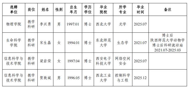 经资格审查,用人单位考查,学校专家评审会审议,必赢官网拟确定下列人员来校工作,聘任方式为事业编正常选聘。本着公平、公正、公开的原则,现将本次拟选聘人员基本情况公示如下: