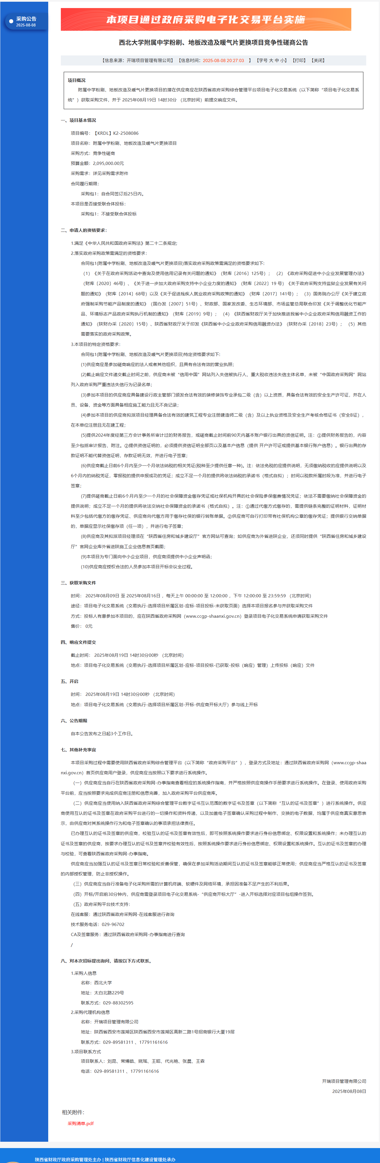 公告地址:https://www.ccgp-shaanxi.gov.cn/freecms/site/shaanxi/ggxx/info/2025/8a69c4d59860f6420198899b50a47f9c.html