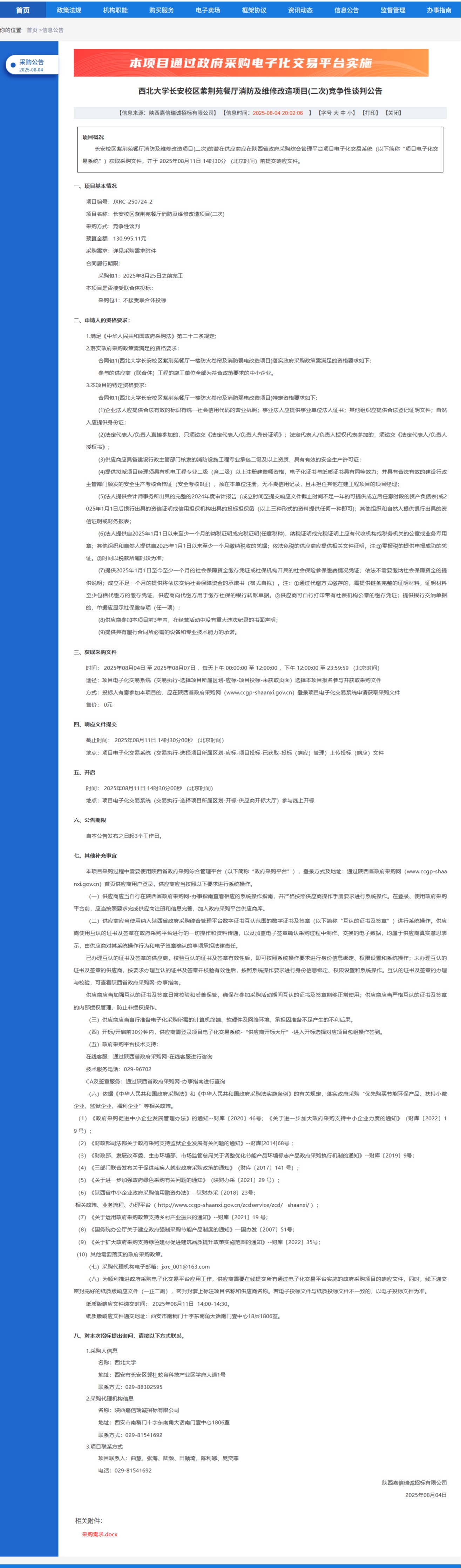 公告地址:https://www.ccgp-shaanxi.gov.cn/freecms/site/shaanxi/ggxx/info/2025/8a69c1e29860ef6f019874c6b4a22713.html?noticeType=001013¬iceId=e37c65dc-712c-11f0-8063-08c0eb20c666
