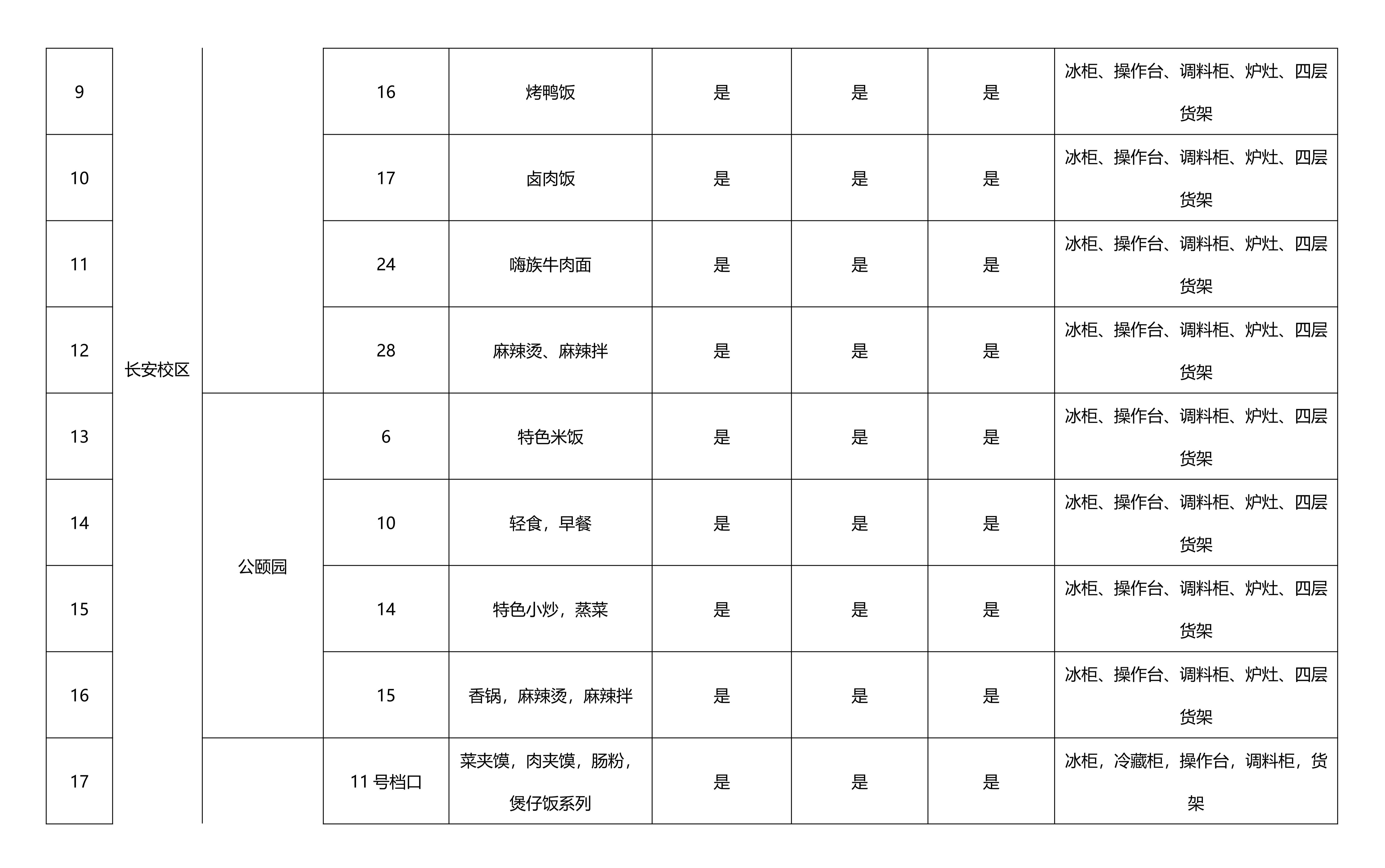 项目简介:本次采用公开遴选方式共引进26个档口,部分提供设备,相关信息详见下表。