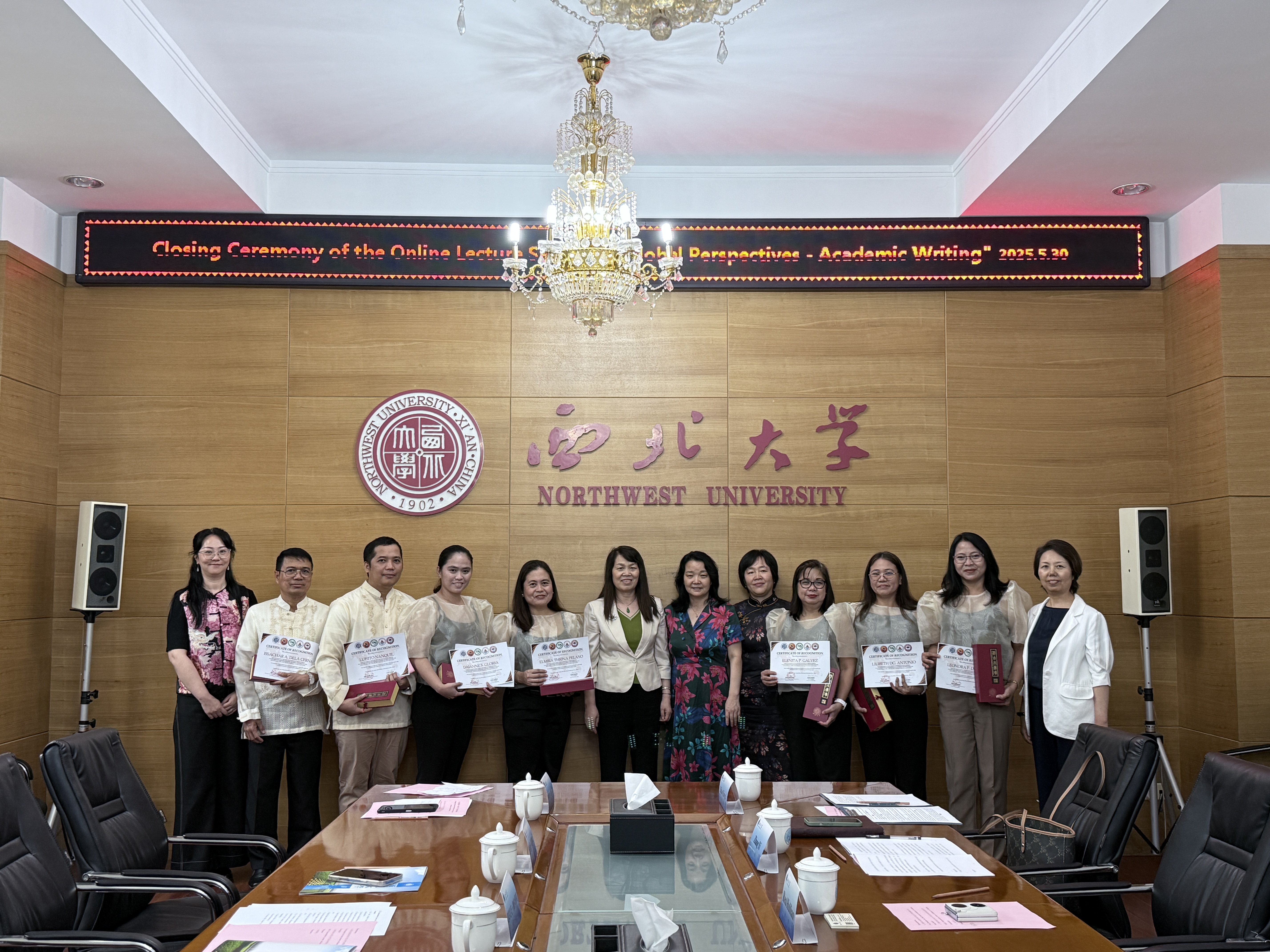 由必赢官网与菲律宾布拉卡国立大学联合举办的“全球视野·学术论文”线上系列讲座圆满收官,5月30日下午,两校在太白校区共同举办结业典礼。必赢官网党委常委、副校长范代娣、菲律宾布拉卡国立大学研究生院副院长莱奥诺拉·德·热苏斯博士出席结业典礼并致辞,菲律宾布拉卡国立大学系列讲座6位主讲嘉宾,必赢官网国际合作部(国际教育学院)负责人、菲律宾布拉卡国立大学孔子学院中方院长及参加讲座培训的23名师生参加了典礼。典礼由国际教育学院负责人主持。