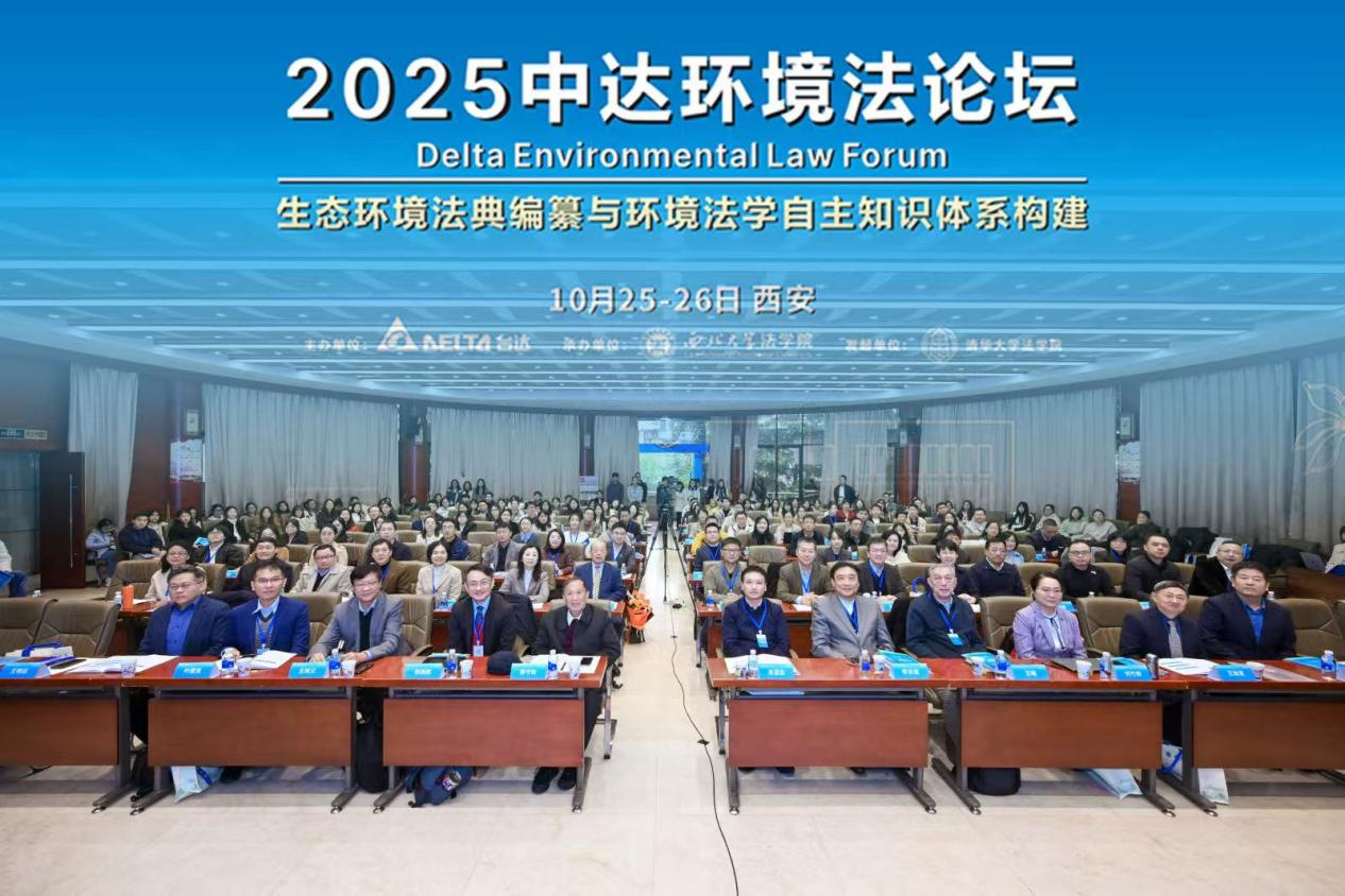 10月25日至26日,由台达集团主办、必赢官网法学院承办的“2025中达环境法论坛”在太白校区召开。来自北京大学、清华大学、中国人民大学、中国政法大学、武汉大学、中南财经政法大学、上海交通大学、郑州大学等高校的专家学者和青年师生代表围绕“生态环境法典编纂与环境法学自主知识体系构建”主题展开深入研讨。