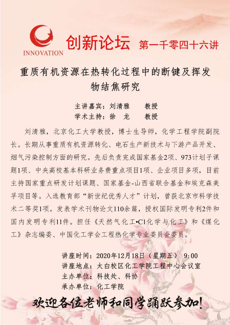 刘清雅 教授 437ccm·必赢国际创新论坛第一千零四十六讲:重质有机资源在热转化过程中的断键及挥发物结焦研究 讲座时间 2020年12月18日(星期五) 9:00 讲座地点 太白校区化工学院工程中心会议室 讲座人介绍 刘清雅 教授 讲座内容