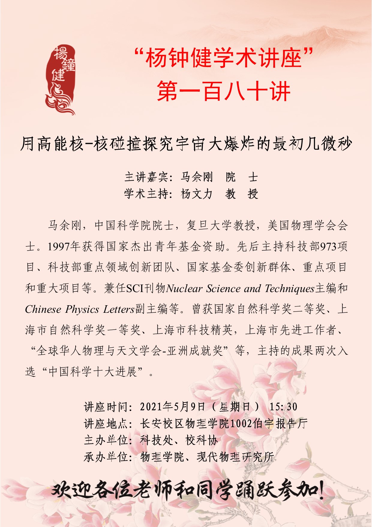 “杨钟健学术讲座”第一百八十讲:用高能核-核碰撞探究宇宙大爆炸的最初几微秒