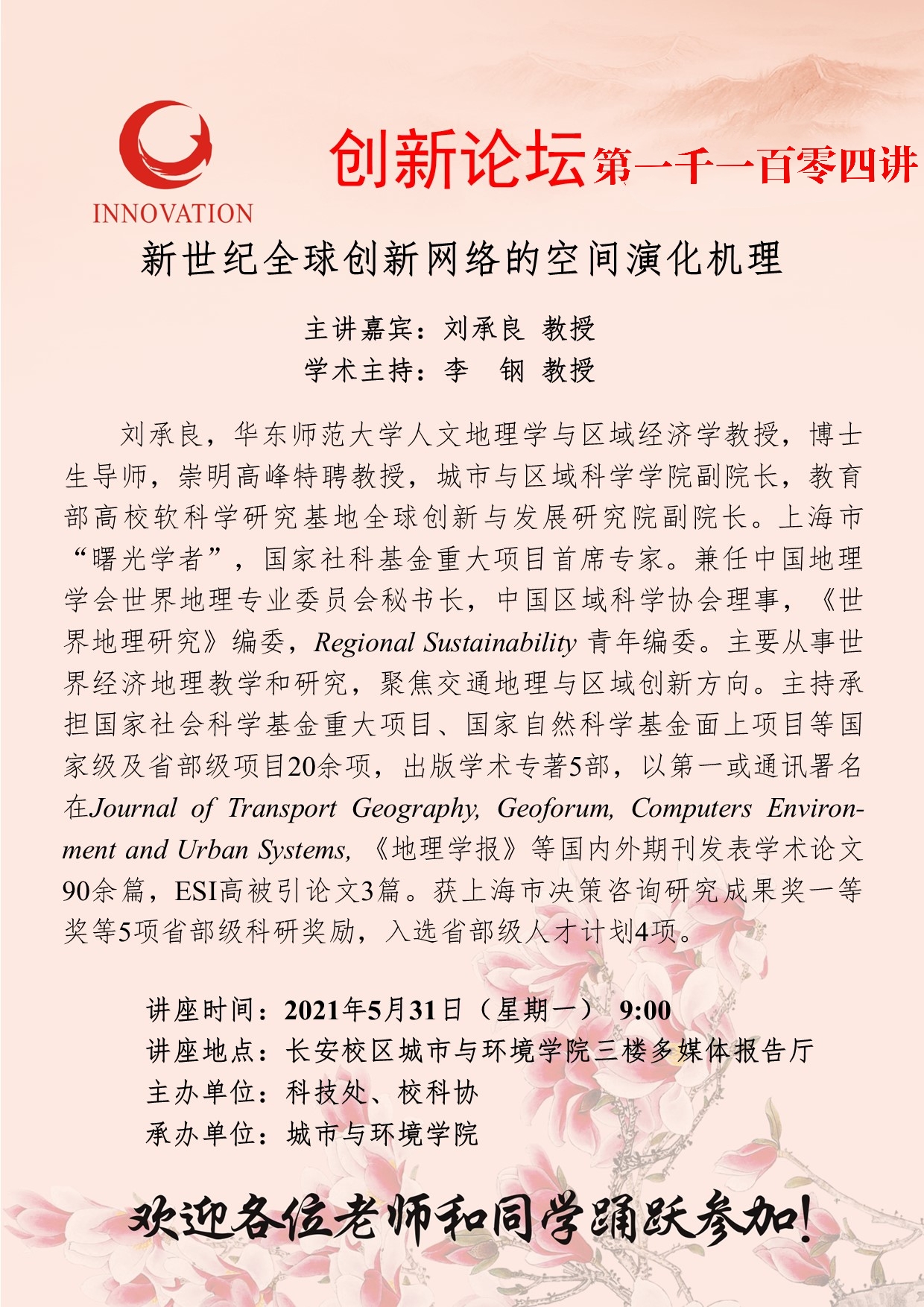 刘承良 教授 437ccm·必赢国际创新论坛第一千一百零四讲:新世纪全球创新网络的空间演化机理 讲座时间 2021年5月31日(星期一) 9:00 讲座地点 长安校区城市与环境学院三楼多媒体报告厅 讲座人介绍 刘承良 教授 讲座内容