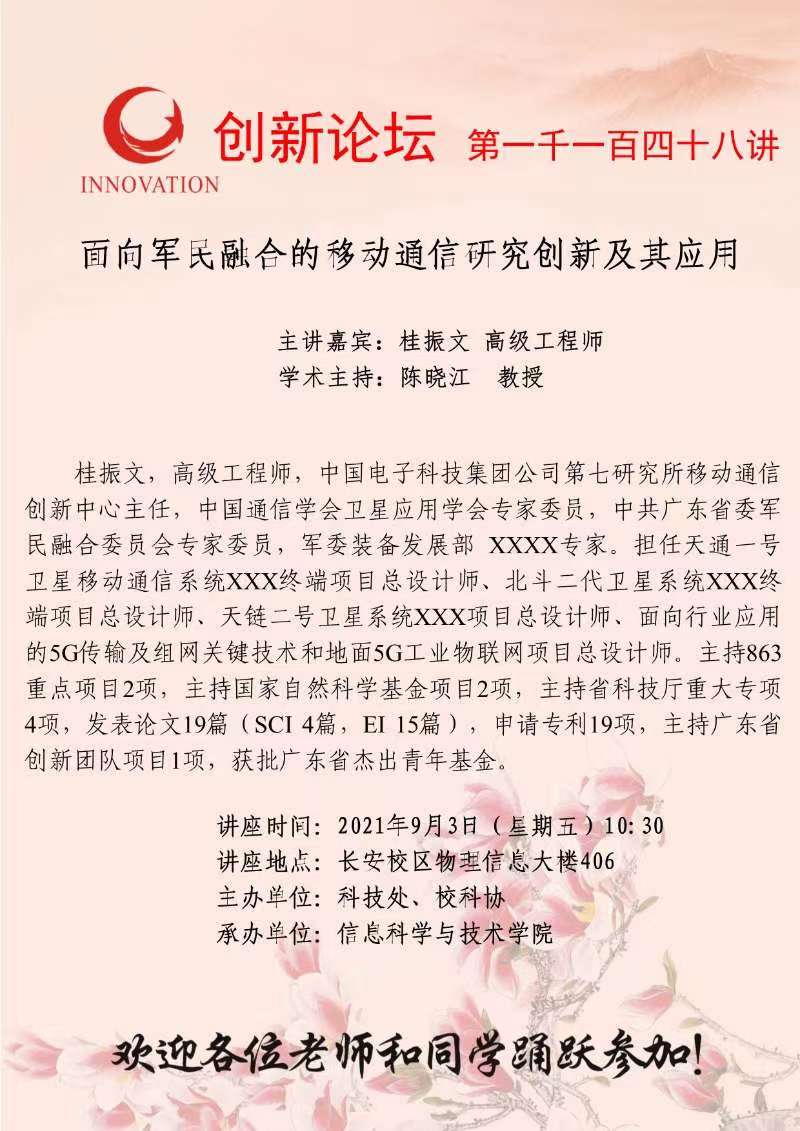 桂振文 高级工程师 437ccm·必赢国际创新论坛第一千一百四十八讲:面向军民融合的移动通信研究创新及其应用 讲座时间 2021年9月3日(星期五)10:30 讲座地点 长安校区物理信息大楼406 讲座人介绍 桂振文 高级工程师 讲座内容