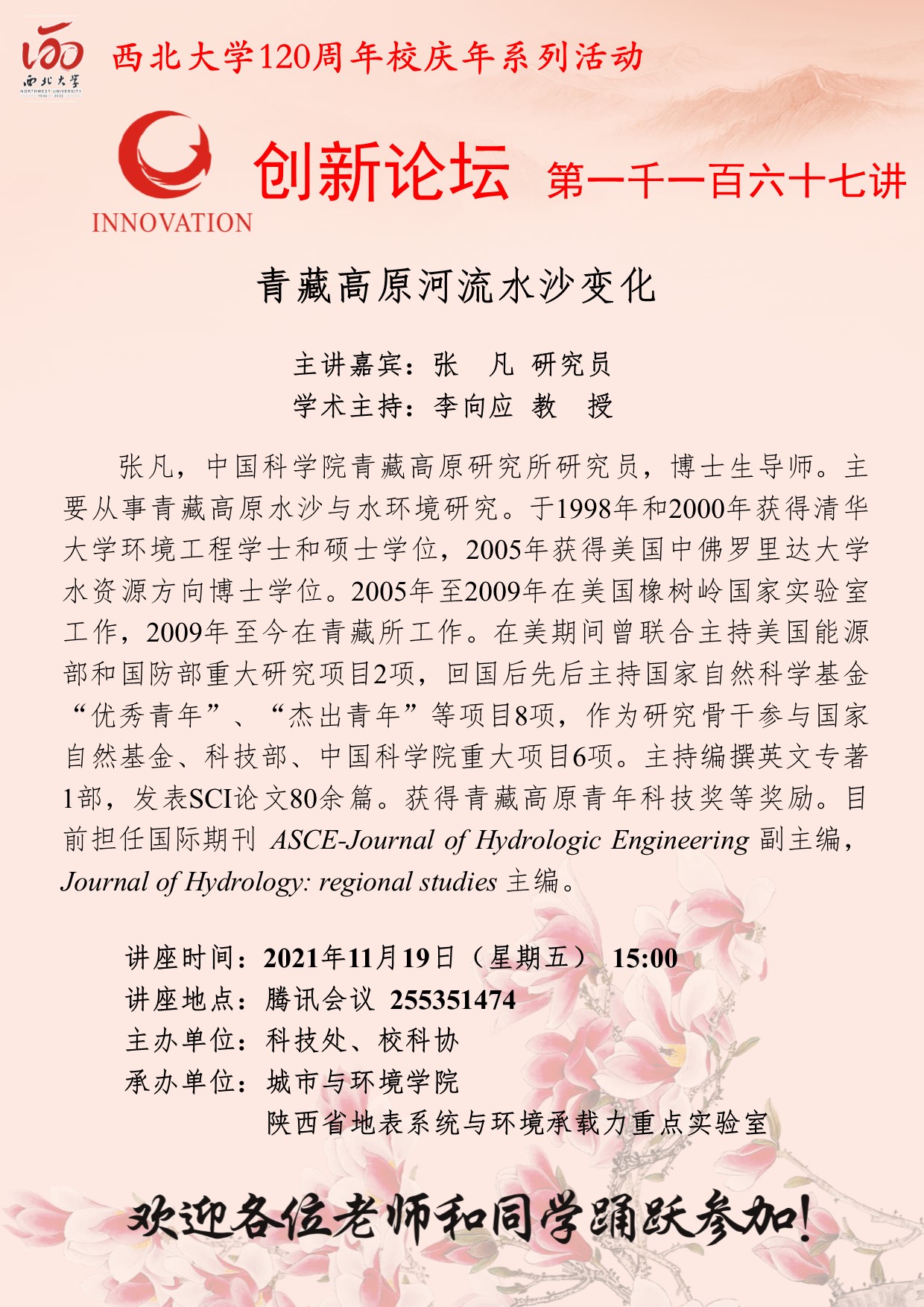 张凡 研究员 437ccm·必赢国际创新论坛第一千一百六十七讲暨120周年校庆年系列活动:青藏高原河流水沙变化 讲座时间 2021年11月19日(星期五) 15:00 讲座地点 腾讯会议 255351474 讲座人介绍 张凡 研究员 讲座内容