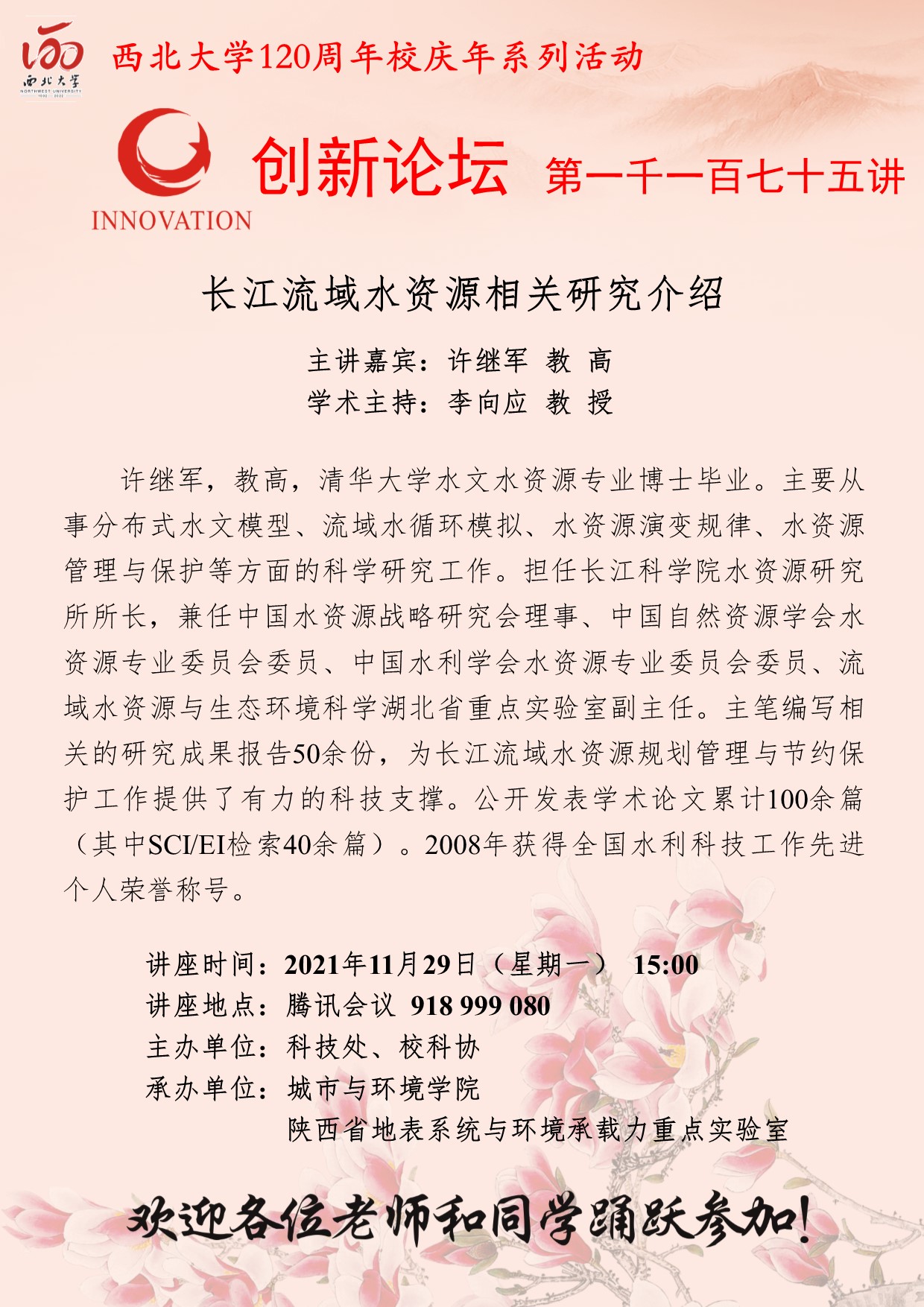 许继军 教高 437ccm·必赢国际创新论坛第一千一百七十五讲暨120周年校庆年系列活动:长江流域水资源相关研究介绍 讲座时间 2021年11月29日(星期一) 15:00 讲座地点 腾讯会议:918999080 讲座人介绍 许继军 教高 讲座内容