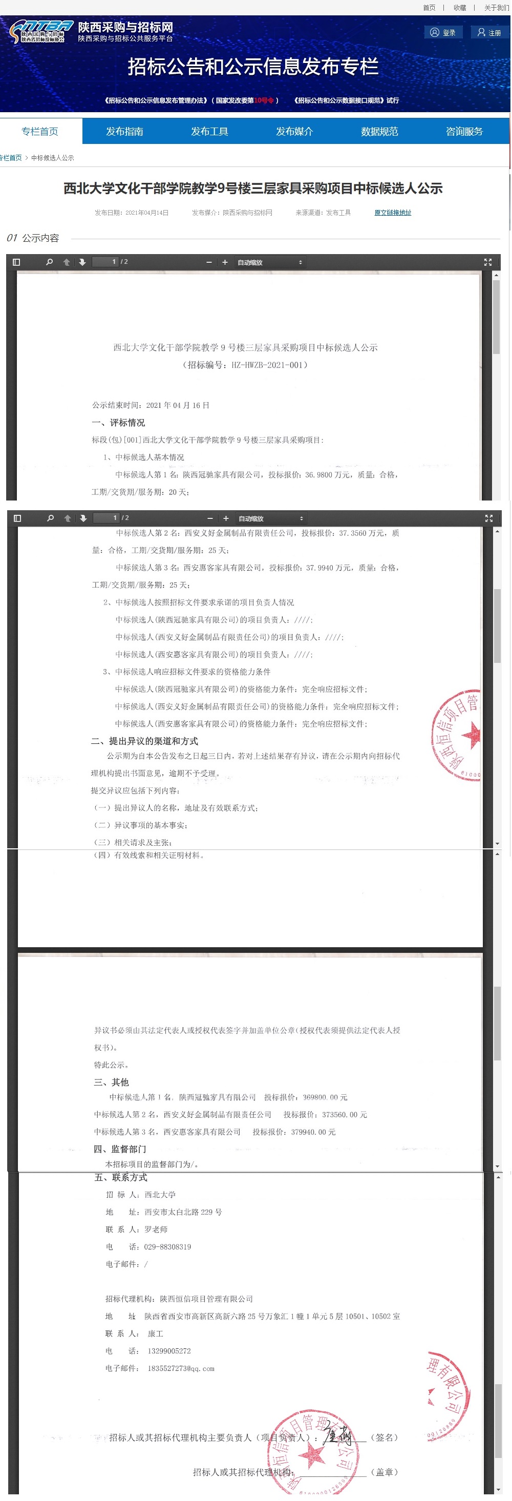 437ccm·必赢国际文化干部学院教学9号楼三层家具采购项目中标候选人公示