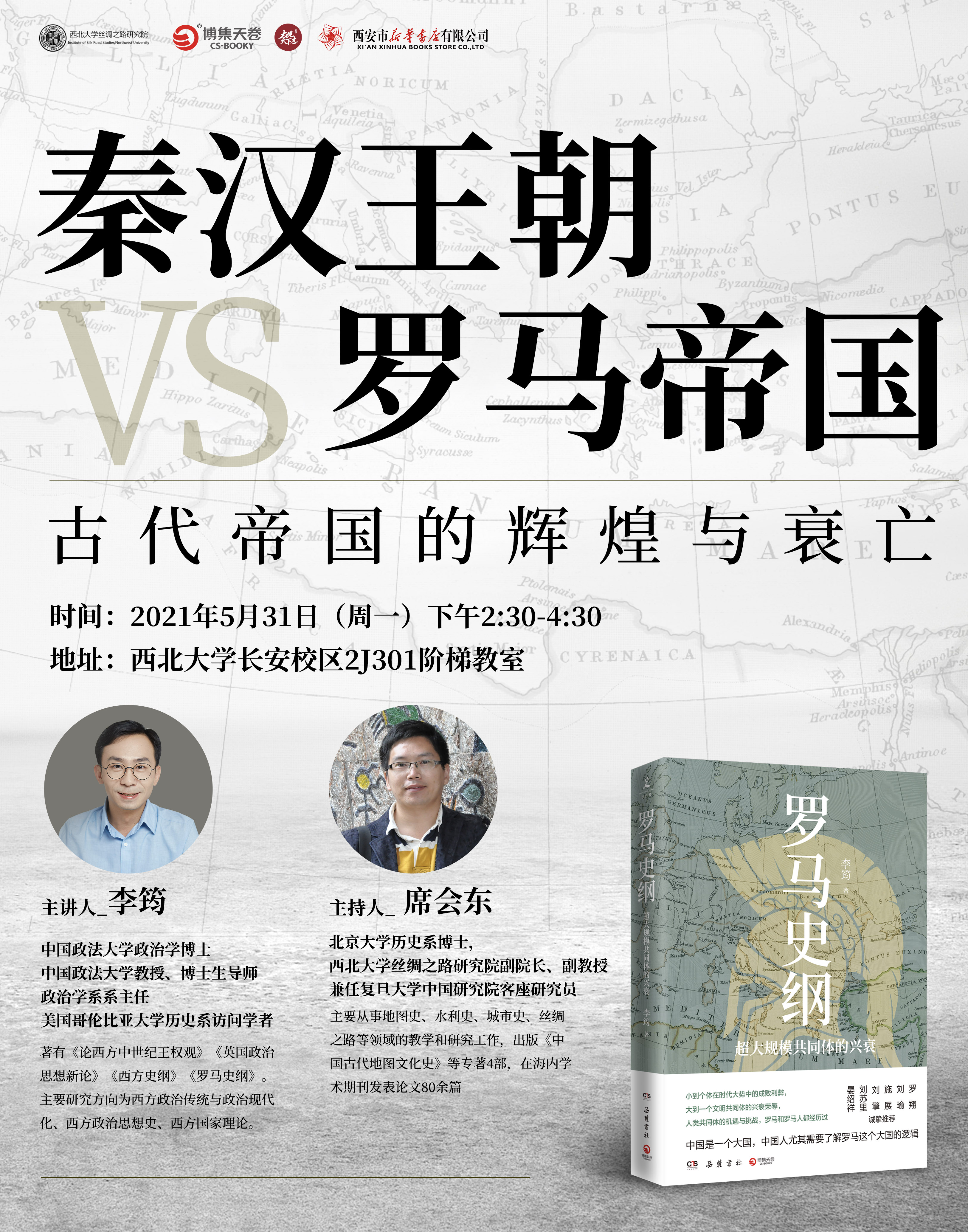 讲座预告:秦汉王朝VS罗马帝国:古代帝国的辉煌与衰亡 作者: 编辑:叶苗 时间:2021-05-30 时间:2021年5月31号(周一)下午2:30-4:30 地点:437ccm·必赢国际长安校区2J301 主讲人:李筠 中国政法大学教授 主持人:席会东 437ccm·必赢国际丝绸之路研究院副教授