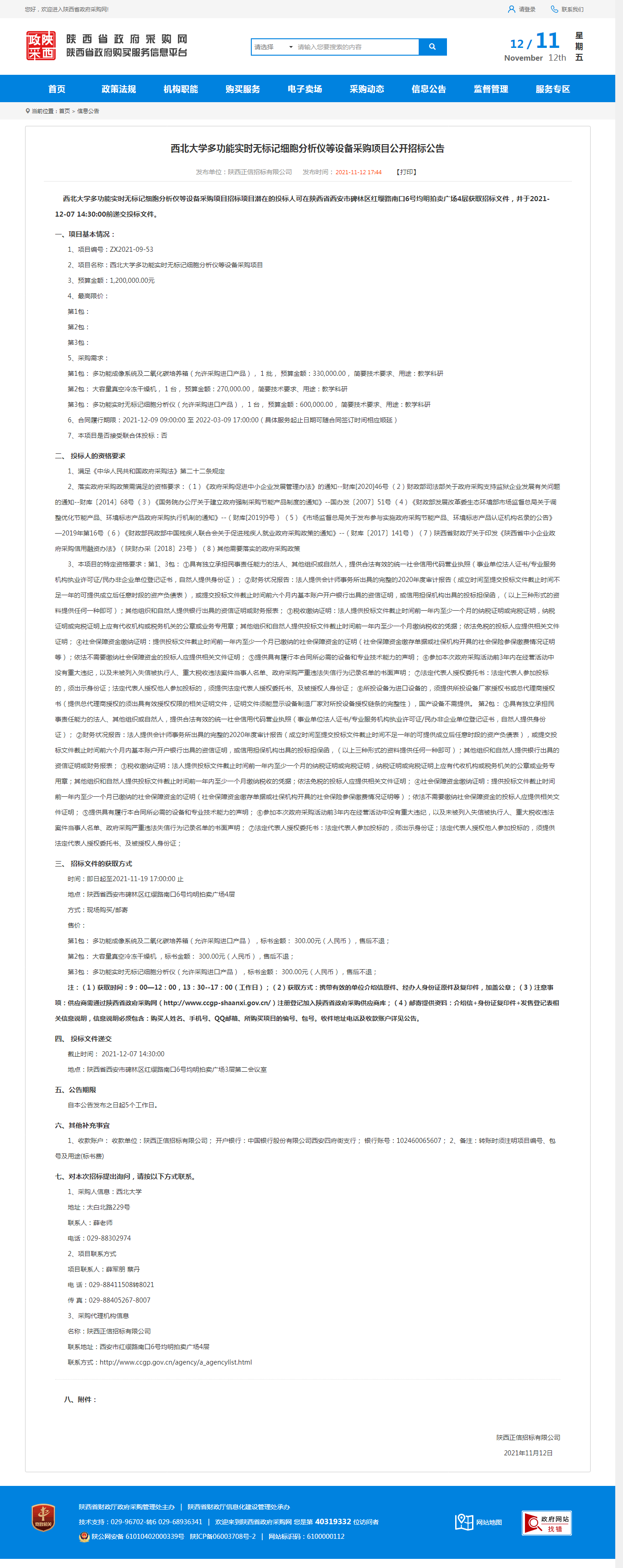 437ccm·必赢国际多功能实时无标记细胞分析仪等设备采购项目公开招标公告 作者: 编辑:薛利娟 时间:2021-11-12 原公告网址:http://www.ccgp-shaanxi.gov.cn/notice/noticeDetail.do?noticeguid=8a85be337cefc032017d13792f9f29a1