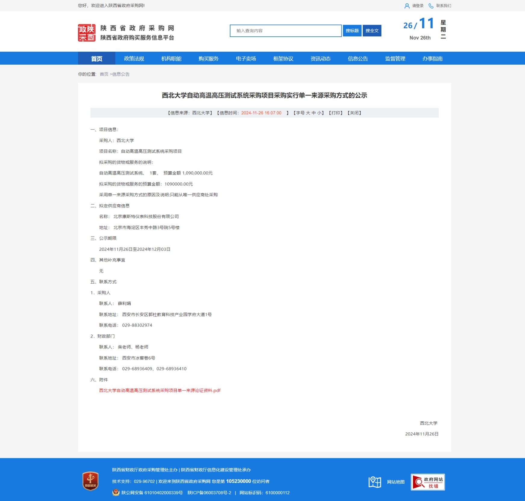 437ccm·必赢国际自动高温高压测试系统采购项目采购实行单一来源采购方式的公示 作者: 编辑:薛利娟 时间:2024-11-26 原公告链接:https://www.ccgp-shaanxi.gov.cn/freecms/site/shaanxi/ggxx/info/2024/8a69c037936597080193677af75243c5.html?noticeType=001051¬iceId=008eb2b0-abcf-11ef-8063-08c0eb20c666