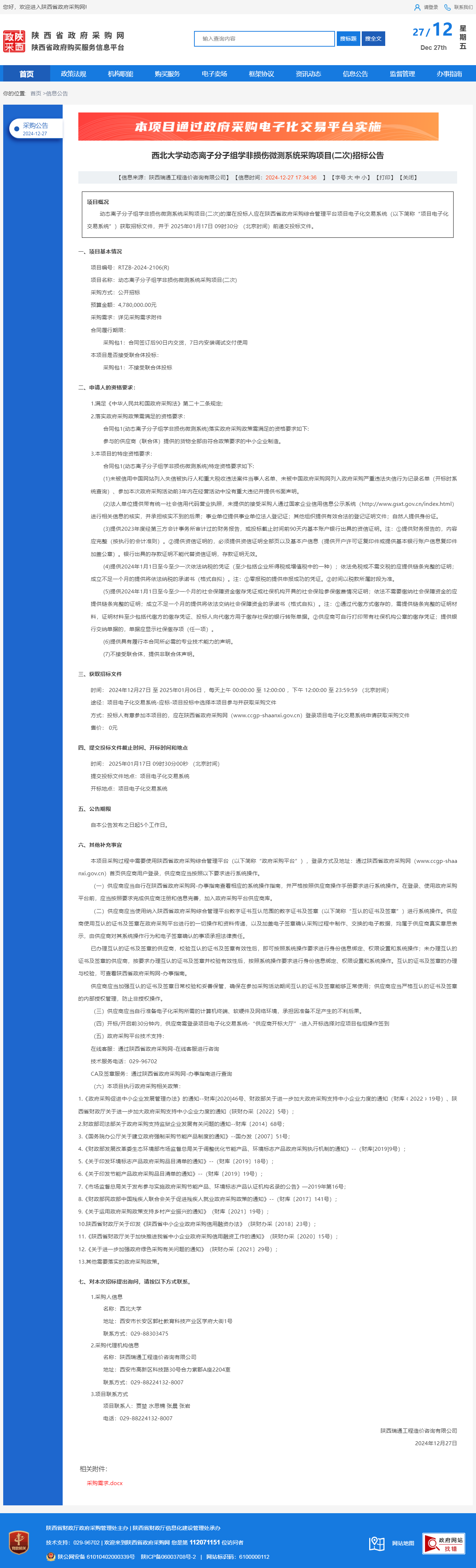 437ccm·必赢国际动态离子分子组学非损伤微测系统采购项目(二次)招标公告 作者:采购与招标办公室 编辑: 时间:2024-12-27 原公告链接:http://www.ccgp-shaanxi.gov.cn/freecms/site/shaanxi/ggxx/info/2024/8a69c5a59218576d019407700c364918.html?noticeType=001011¬iceId=6f721510-c437-11ef-8063-08c0eb20c666