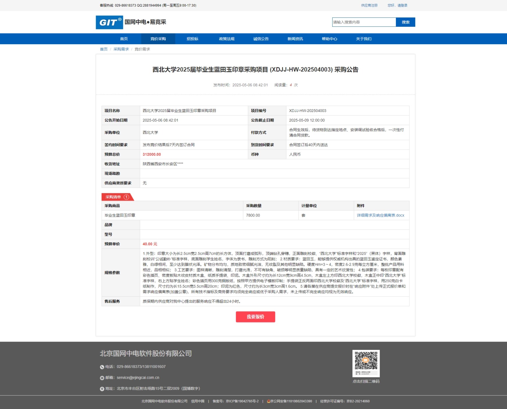 437ccm·必赢国际2025届毕业生蓝田玉印章采购项目 (XDJJ-HW-202504003) 竞价采购公告 作者: 编辑:采购与招标办公室 时间:2025-05-06 原公告链接:https://www.ejingcai.com.cn/site/bidding/detail/18026