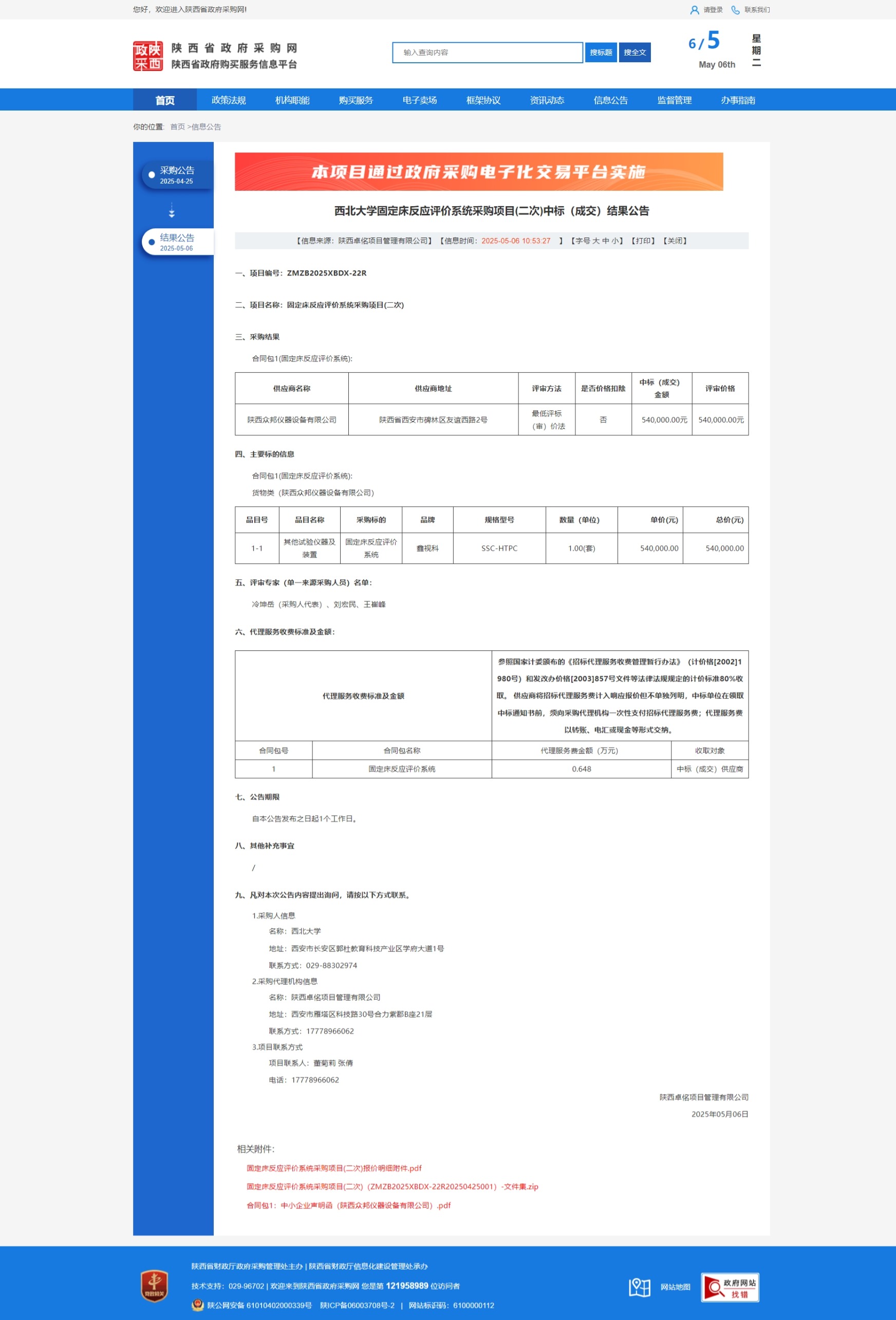 437ccm·必赢国际固定床反应评价系统采购项目(二次)中标(成交)结果公告 作者: 编辑:采购与招标办公室 时间:2025-05-06 原公告链接:https://www.ccgp-shaanxi.gov.cn/freecms/site/shaanxi/ggxx/info/2025/8a69c0a2967206000196a355be75555d.html?noticeType=001023¬iceId=2cacf8fa-2a27-11f0-8063-08c0eb20c666