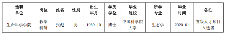 经资格审查,用人单位考查,学校审批,必赢官网拟确定下列人员来校工作,聘任方式为事业编特别选聘。本着公平、公正、公开的原则,现将本次拟选聘人员基本情况公示如下: