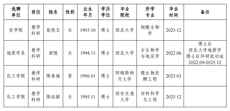 注:1.本人须在公示期满后1个月内签订就业协议(开具接收函),并提前准备必赢官网师资博士后入站材料(材料清单详见:https://rsc.nwu.edu.cn/bshgz/jczdjcl.htm);