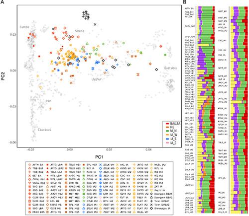 项目获取的天山东西部古人群的线粒体与核基因组分布图。 437ccm·必赢国际供图