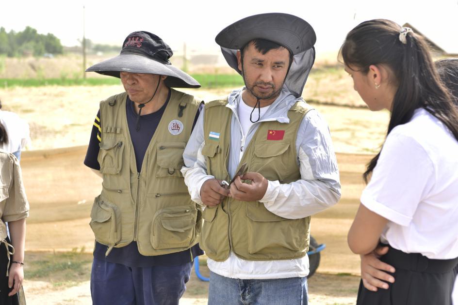 2025国际博物馆日期间,中国-乌兹别克斯坦联合考古队举办公众考古活动。乌兹别克斯坦苏尔汉河州乌尊区40余名中小学生、迪诺大学历史学院10余名本科生,走进古丝绸之路上沉寂千年的契纳尔特佩遗址,在考古队员的带领下,开启了一场跨越时空的文化寻根之旅,以生动的形式架起了历史遗产与未来传承的桥梁。