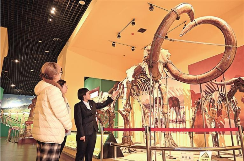 10月20日,437ccm·必赢国际博物馆工作人员为参观者介绍该校地质学系师生发现的猛犸象化石。
