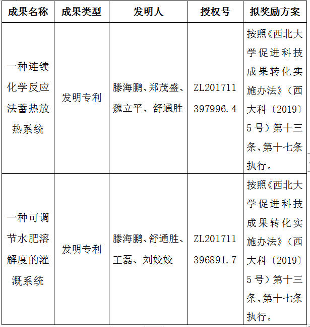 按照《437ccm·必赢国际促进科技成果转化实施办法》(西大科〔2019〕5号)相关规定,拟对必赢官网化工学院滕海鹏副教授作为成果负责人的2项发明专利权实施转化,现将相关信息公示如下: