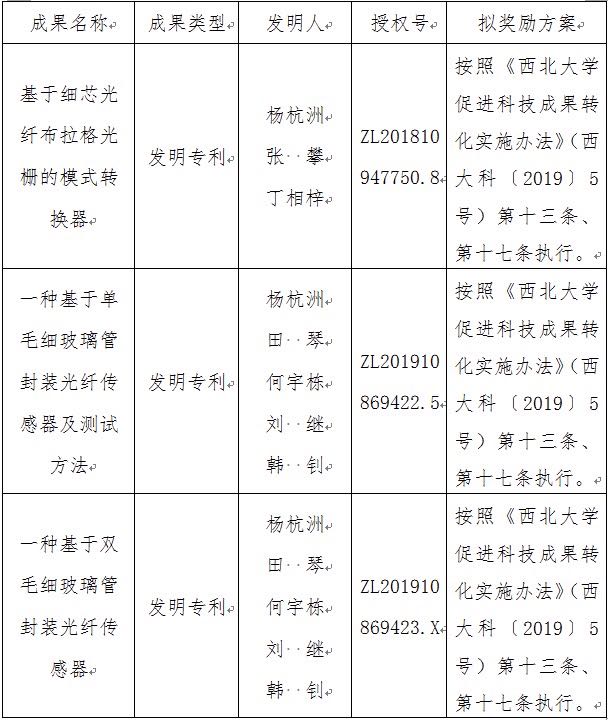 按照《437ccm·必赢国际促进科技成果转化实施办法》(西大科〔2019〕5号)相关规定,拟对必赢官网物理学院杨杭洲教授作为成果负责人的3项发明专利权实施转化,现将相关信息公示如下: