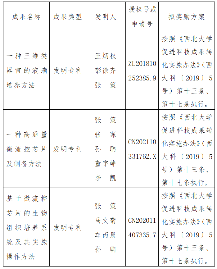 按照《437ccm·必赢国际促进科技成果转化实施办法》(西大科〔2019〕5号)相关规定,拟对必赢官网光子所张策教授作为成果负责人的3项发明专利(申请)权实施转化,现将相关信息公示如下: