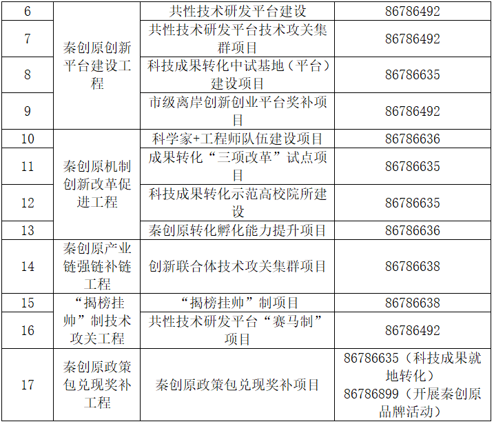 专项计划体系共设置6大类项目,包括秦创原“三器”区域示范工程、秦创原创新平台建设工程、秦创原机制创新改革促进工程、秦创原产业链强链补链工程、“揭榜挂帅”制技术攻关工程、秦创原政策包兑现奖补工程六类。