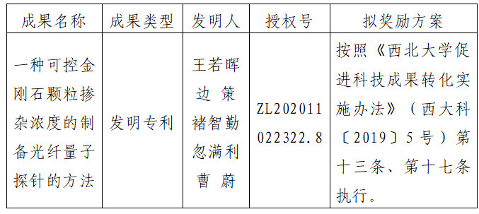按照《437ccm·必赢国际促进科技成果转化实施办法》(西大科〔2019〕5号)相关规定,拟对必赢官网物理学院王若晖副教授作为成果负责人的1项发明专利权实施转化,现将相关信息公示如下: