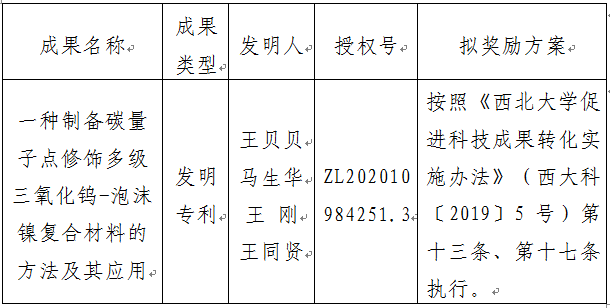 按照《437ccm·必赢国际促进科技成果转化实施办法》(西大科〔2019〕5号)相关规定,拟对必赢官网光子所王贝贝老师作为成果负责人的1项发明专利权实施转化,现将相关信息公示如下: