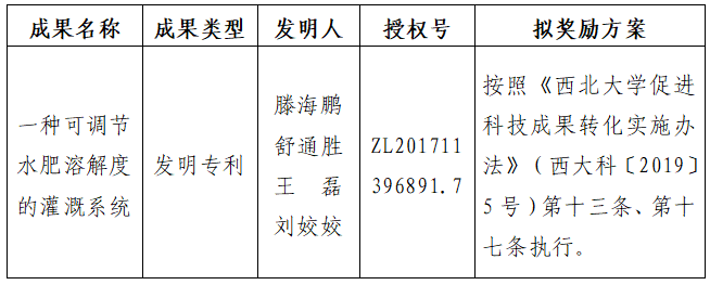 按照《437ccm·必赢国际促进科技成果转化实施办法》(西大科〔2019〕5号)相关规定,拟对必赢官网化工学院滕海鹏副教授作为成果负责人的1件发明专利权实施转化,现将相关信息公示如下: